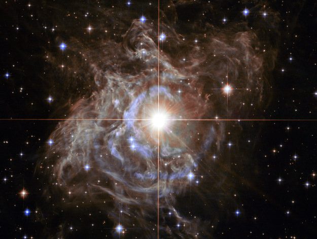 named RS Puppis, brightens and dims over a 40-day-long cycle, and newly-released observations with Hubble reveal not only the star but also the echoes of its bright surges as they reflect off the dusty nebula surrounding it.