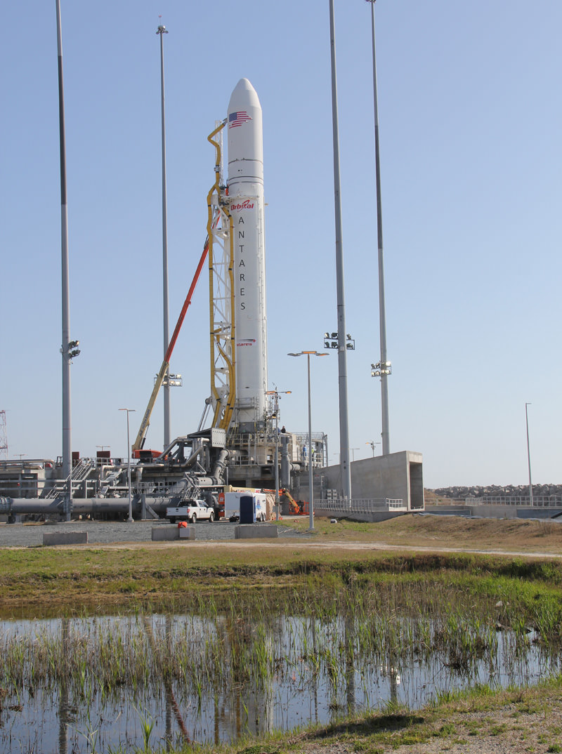 It's been billed as "the biggest, loudest and brightest rocket ever to launch from NASA's Wallops Flight Facility" in Virginia, and the commercial company Orbital Sciences Corporation is ready to send their Antares rocket on its maiden test flight. Orbital is testing Antares under NASA's Commercial Orbital Transportation Services (COTS) program, and the rocket will send a dummy module into orbit that has the same mass as Orbital's Cygnus cargo spacecraft, as well as a few smaller satellites, testing the rocket's capabilities.