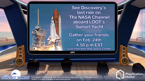 Get a dose of reality via Sony's PlayStation gaming system. The final liftoff of space shuttle Discovery on February 24, 2011 at 4:50 pm EST will be the first live streaming event to be offered by PlayStationHome, the social gaming networking service, and provide a unique "social viewing" environment.