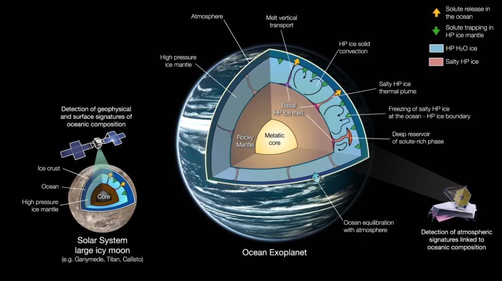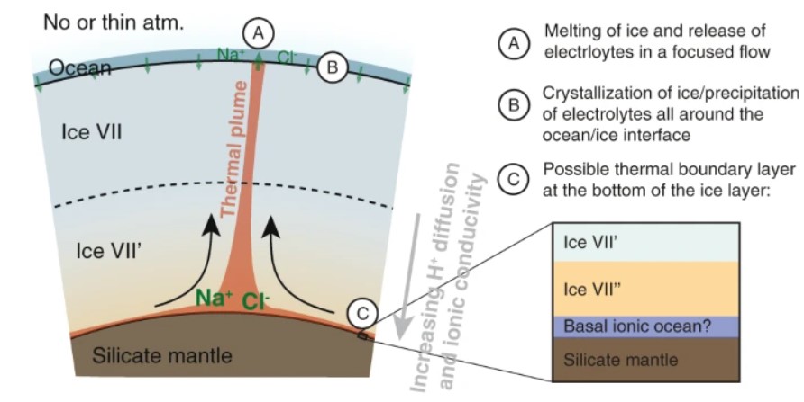 "Electrolytes play an important role in the internal structure and dynamics of water-rich satellites and potentially water-rich exoplanets," the paper begins. "However, in planets, the presence of a large high-pressure ice mantle is thought to hinder the exchange and transport of electrolytes between various liquid and solid deep layers."