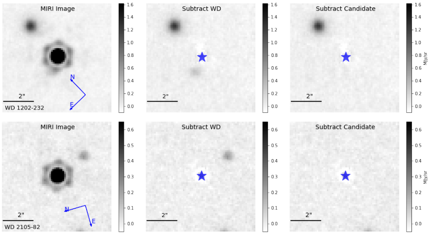 Some white dwarfs appear to be polluted with metals, elements heavier than hydrogen and helium. Astronomers think that these metals come from asteroids in the asteroid belt, perturbed and sent into the white dwarf by giant planets. "Confirmation of these two planet candidates with future MIRI imaging would provide evidence that directly links giant planets to metal pollution in white dwarf stars," the authors write.