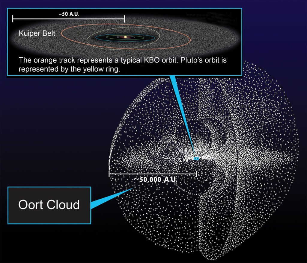 Even though there's some mystery involved, and even though the planet formation process is not fully understood, there are intriguing similarities between the Fomalhaut system and our own Solar System, as well as the disks in other systems. Astronomers have found that debris disks are separated into a warmer inner disk and a colder outer disk. Our Solar System conforms to this, with the relatively warm asteroid belt and the colder Kuiper Belt. A third, more distant structure called the Oort Cloud may also exist.