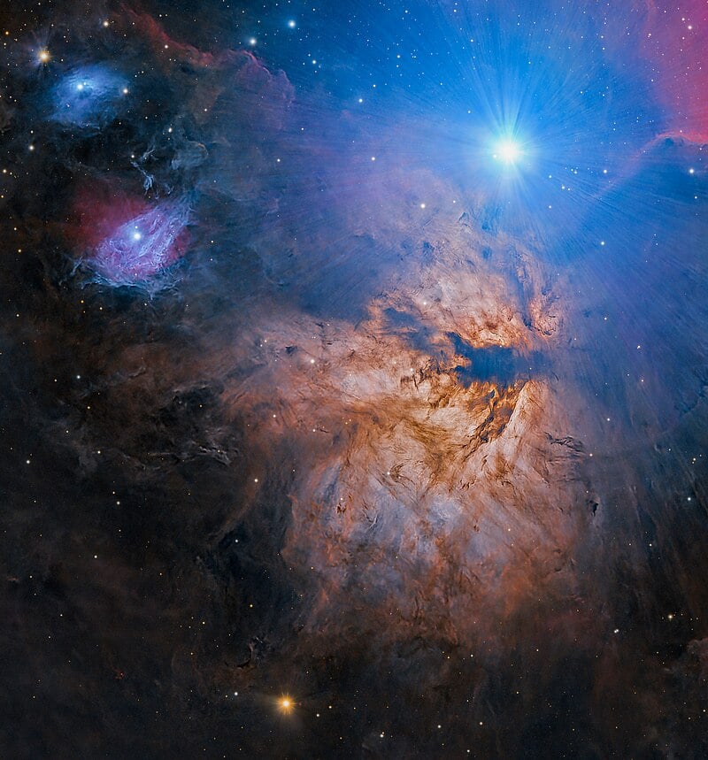 This is the Flame Nebula in visible light (broadband). The bright star above it Alnitak. The nebulae to the upper left of it are IC 431 and IC 432. Captured by amateur astronomer Chuck Ayoub. Target: Flame Nebula Imaging Telescope: Celestron RASA (400 focal length) Focuser: Celestron Electronic Focuser Mount: Sky-Watcher EQ6-R Pro Imaging Camera: ZWO ASI533MC Color Total Exposure Time: 9.39 hours (Credit : Chuck Ayoub)