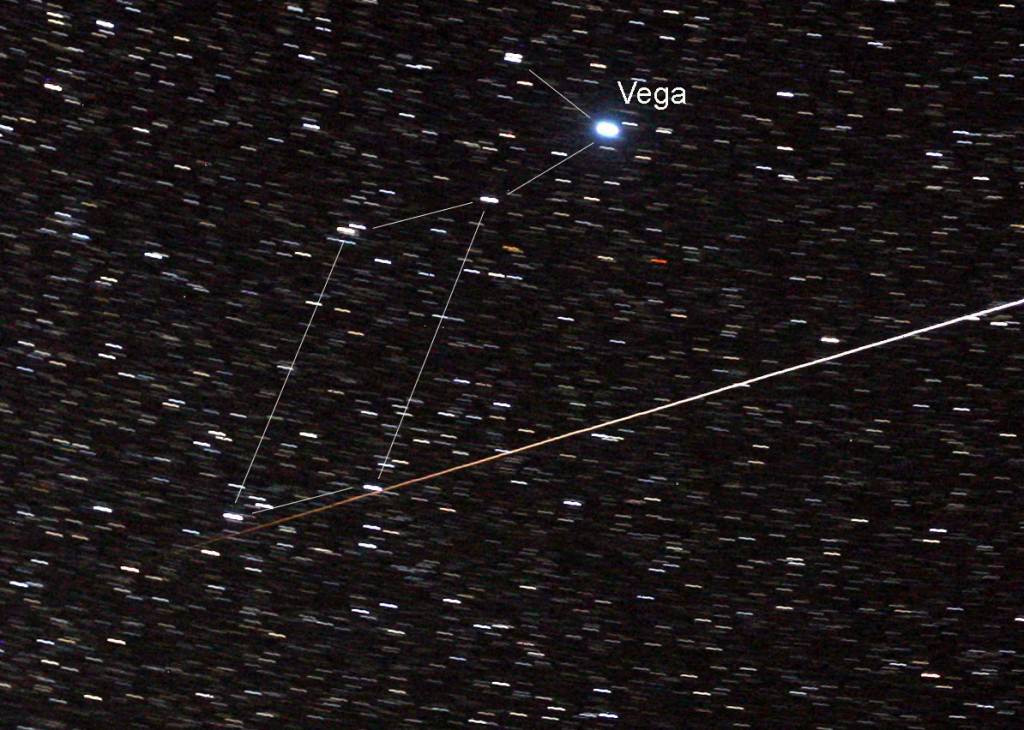 Vega lies in the constellation Lyra and is one of the prominent stars that makes up the Summer Triangle along with Aquila in Altair and Deneb in Cygnus. Vega itself likes 25 light years away from Earth so it is, in astronomical terms, relatively close. It's a hot blue/white star which has a visible surface temperature of around 9,600 degrees. At this temperature it is hotter than the Sun and in size it is about 2.1 times larger in diameter.