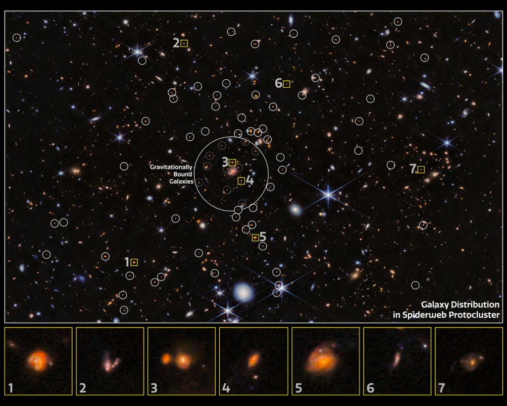 Protoclusters are one key to understanding the Universe, and in two new papers, researchers present the results of the JWST's observations of the Spiderweb protocluster. Among other things, the results show that gravity doesn't play as large a role as thought in the formation of a cluster.