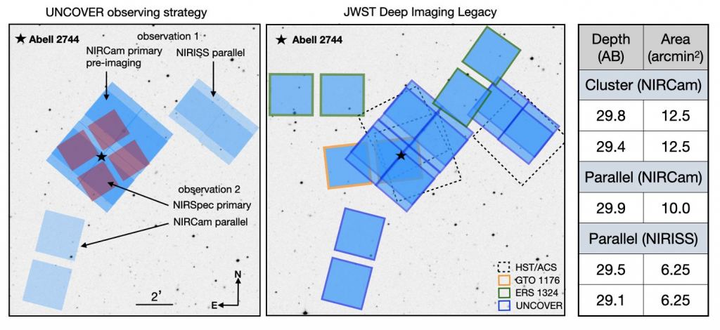 The image was taken as part of the Ultradeep NIRSpec and NIRCam ObserVations before the Epoch of Reionization (UNCOVER) program. The UNCOVER team relies on data obtained by Webb's Near-Infrared Camera (NIRCam) to observe Pandora's Cluster for about 30 hours. Follow-up observations are then made with the Near-Infrared Spectrograph (NIRSpec) to provide precise distance measurements and other detailed information about the lensed galaxies' compositions. The program aims to study early galaxies to gain new insights into galaxy formation and evolution in the early Universe.