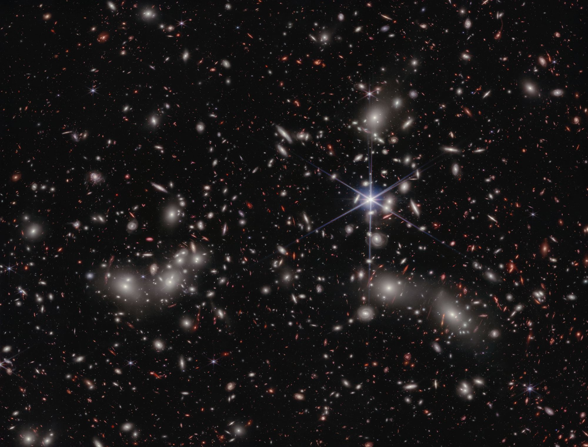 "The ancient myth of Pandora is about human curiosity and discoveries that delineate the past from the future, which I think is a fitting connection to the new realms of the universe Webb is opening up, including this deep-field image of Pandora's Cluster. When the images of Pandora's Cluster first came in from Webb, we were honestly a little star struck." "There was so much detail in the foreground cluster and so many distant lensed galaxies, I found myself getting lost in the image. Webb exceeded our expectations." The new view of Pandora's Cluster stitches four Webb snapshots together into one panoramic image, displaying roughly 50,000 sources of near-infrared light."
