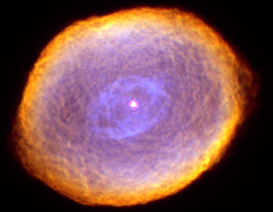 Shown in all its glory through the eye of the Hubble Telescope, the light you see tonight from the IC 408 (Right Ascension: 5 : 17.9 - Declination: -25 : 05) planetary nebula left in the year 7 AD. Its central star, much like our own Sol, was in the final stages of its life at that time, and but a few thousand years earlier was a red giant. As it shed its layers off into about a tenth of a light-year of space, only its superheated core remained - its ultraviolet radiation lighting up the expelled gas. Perhaps in several thousand years the nebula will have faded away, and in several billion years more the central star will have become a white dwarf - a fate that also awaits our own Sun.