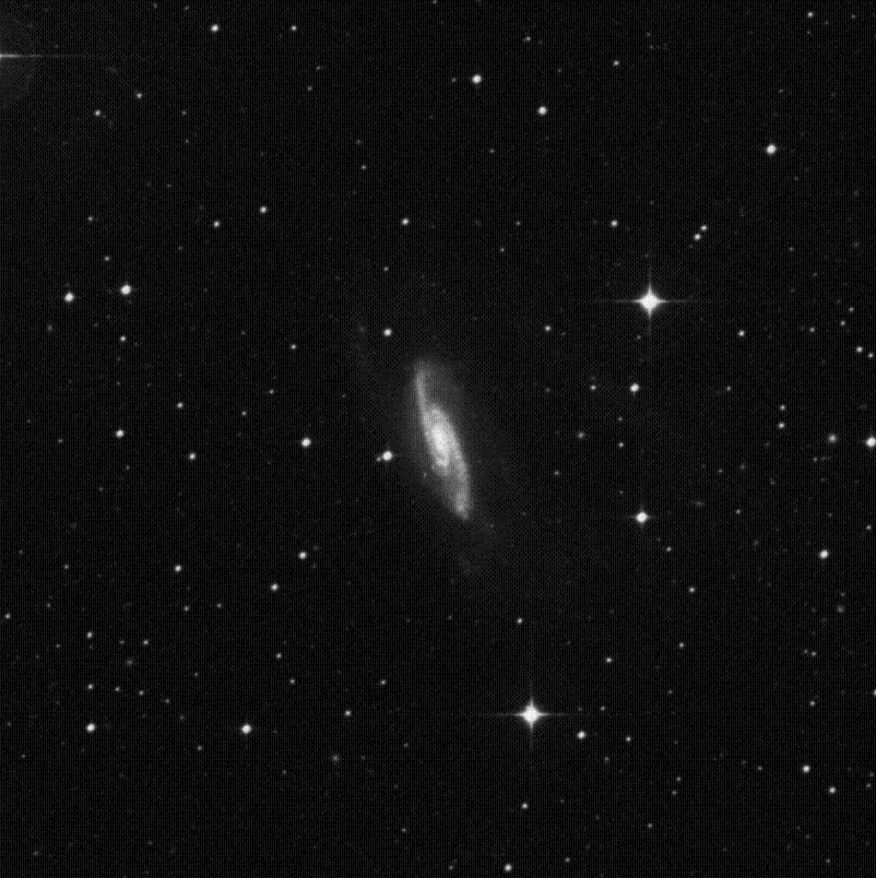 – New Moon! Tonight's first study object, 12.7 magnitude NGC 3956 (Right Ascension: 11 : 54.0 - Declination: -20 : 34) is about a degree due south of NGC 3981. When first viewed, it appears as edge-on structure at low power. Upon study it takes on the form of a highly inclined spiral. A beautiful multiple star, and a difficult double star also resides with the NGC 3956 – appearing almost to triangulate with it. Aversion brings up a very bright core region which over the course of time and study appears to extend away from the center, giving this very sweet galaxy more structure than can be called from it with one observation.