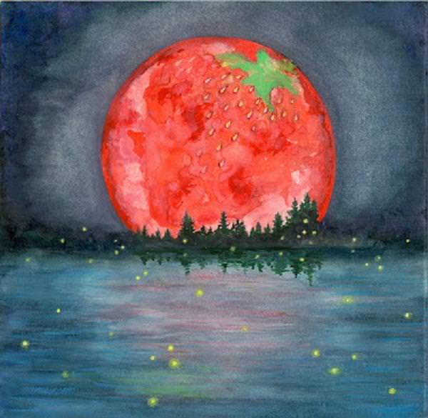 – Tonight the Moon is full. Often referred to as the Full Strawberry Moon, this name was a constant to every Algonquin tribe in North America. But, our friends in Europe referred to it as the Rose Moon. The North American version came about because the short season for harvesting strawberries comes each year during the month of June – so the full Moon that occurs during that month was named for this tasty red fruit!