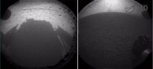 "Touchdown confirmed. We're safe on Mars!" announced mission control from the Jet Propulsion Laboratory after the Mars Science Laboratory's Curiosity rover landed safely on the Red Planet. After blazing through Mars' atmosphere at over 21,000 km/h, Curiosity's unique landing system worked perfectly through the challenging entry, descent, and landing, allowing the rover to touch down and take pictures shortly after. Above are the first two images from Curiosity's view of Mars' Gale Crater. The image on the left shows Curiosity's shadow on Mars.