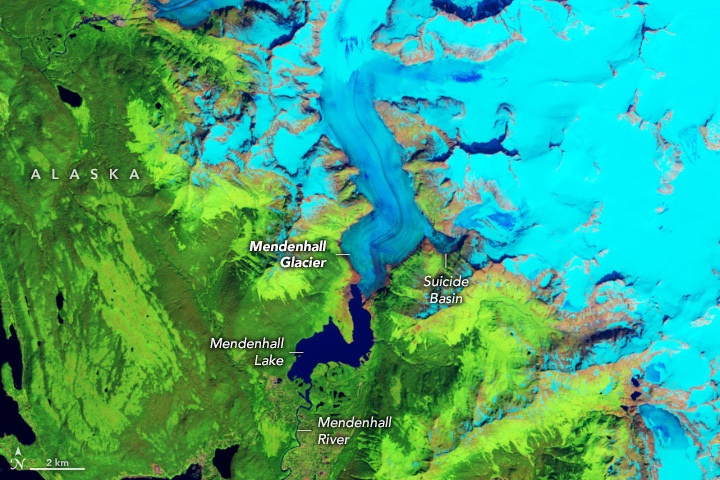 Hudson's Bay, for example, was ice-free early in 2023. Other regions in the northern hemisphere, such as the Siberian Sea, the Beaufort Sea (north of Alaska), and the Kara Sea in Russia are also losing ice cover. The popular Mendenhall Glacier near Juneau, Alaska, is definitely smaller than normal, too. In early August, a nearby glacial lake outburst tied to melting ice flooded nearby areas. Authorities linked it to warming, which has helped shrink the glacier.