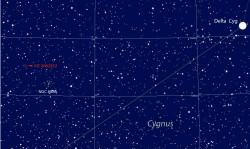 Detailed map showing stars to around magnitude 12 with the KIC 8462852 identified. It's located only a short distance northeast of the open cluster NGC 6886 in Cygnus. North is up. Source: Chris Marriott's SkyMap[/caption]