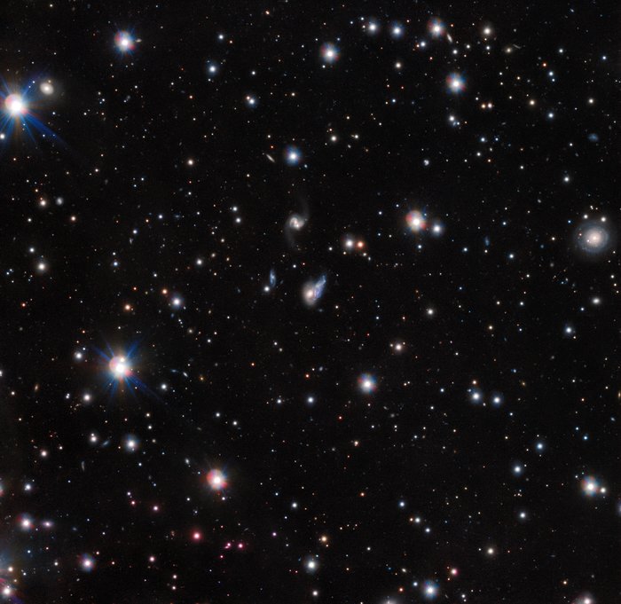 Let's go bigger. This is an image of a collision between galaxies in the process of merging. The larger galaxy, ShaSS 073 has an actively feeding supermassive black hole at its core, which makes it incredibly bright. The less massive galaxy is called ShaSS 622.