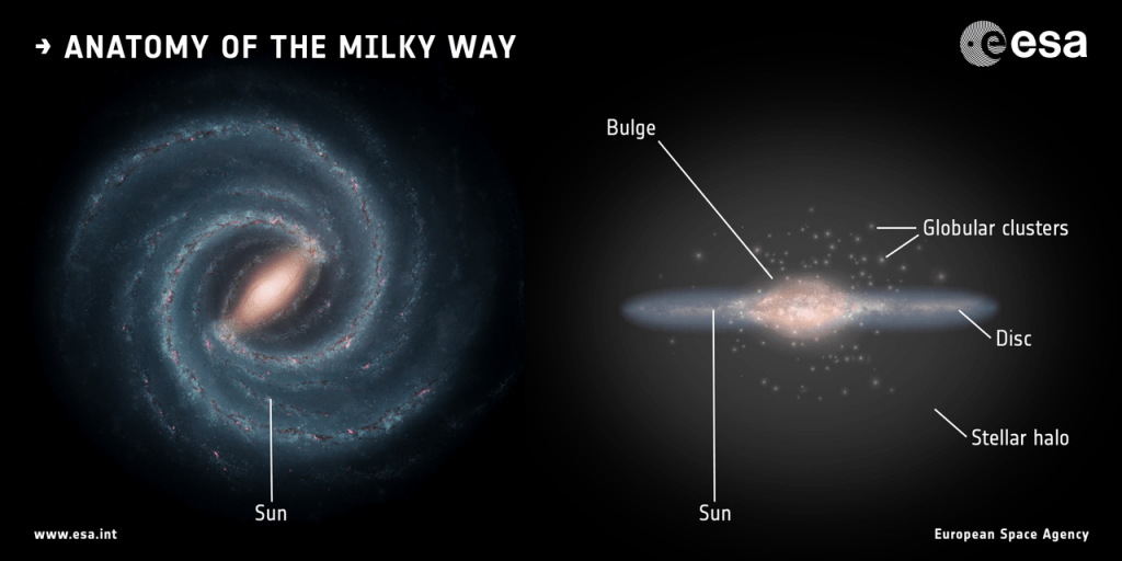 About 10 billion years ago, there was a violent collision between Gaia-Enceladus and the early Milky Way. That event set some stars from the dwarf galaxy and some from the larger Milky Way into chaotic motion, and eventually they formed the halo. Then there was a long period of chaotic outbursts of stellar formation, until things settled down about 6 billion years ago. Then, the gas settled into the disc of the galaxy, and gave us what we call the thin disc.