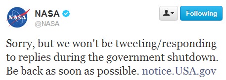 Around 97% of NASA's 18,000 employees are off the job. Twitter, Facebook, Google Plus and other social media accounts are going dark. NASA's website is being pulled offline. NASA Television has also ceased broadcasting.
