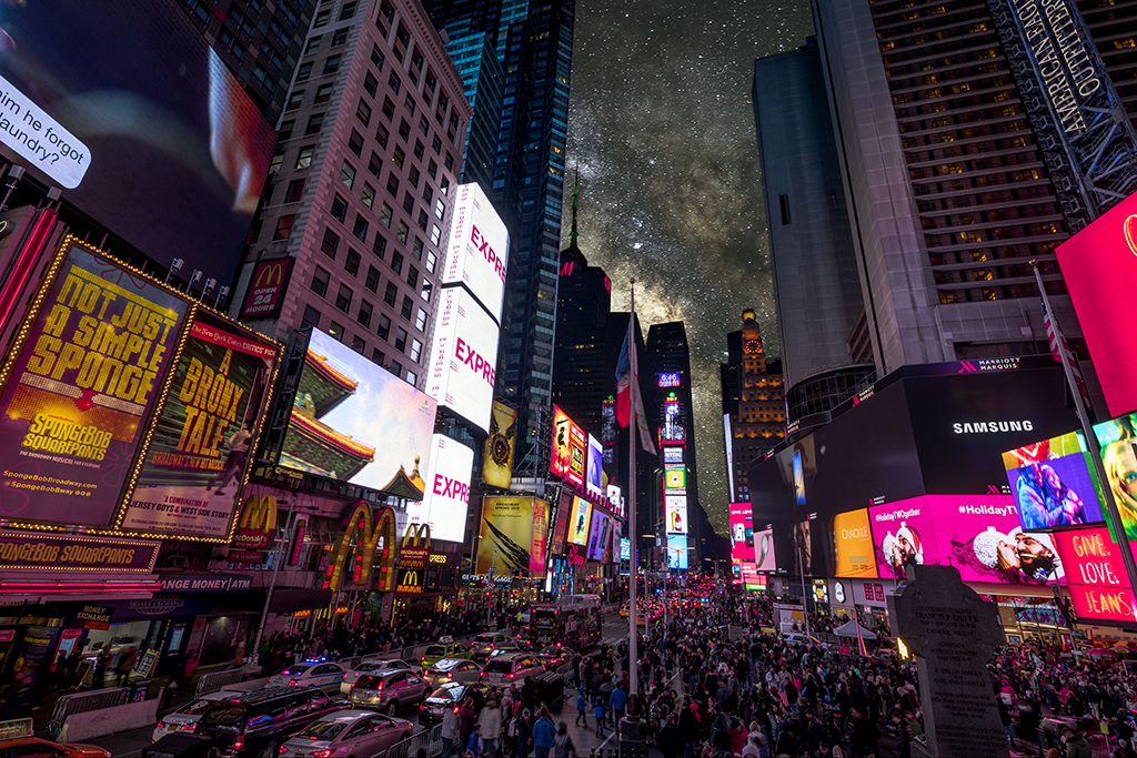 The team carefully matched up timelapse video of New York City with the pristine night skies of the Grand Canyon and Death Valley International Dark-Sky Parks.