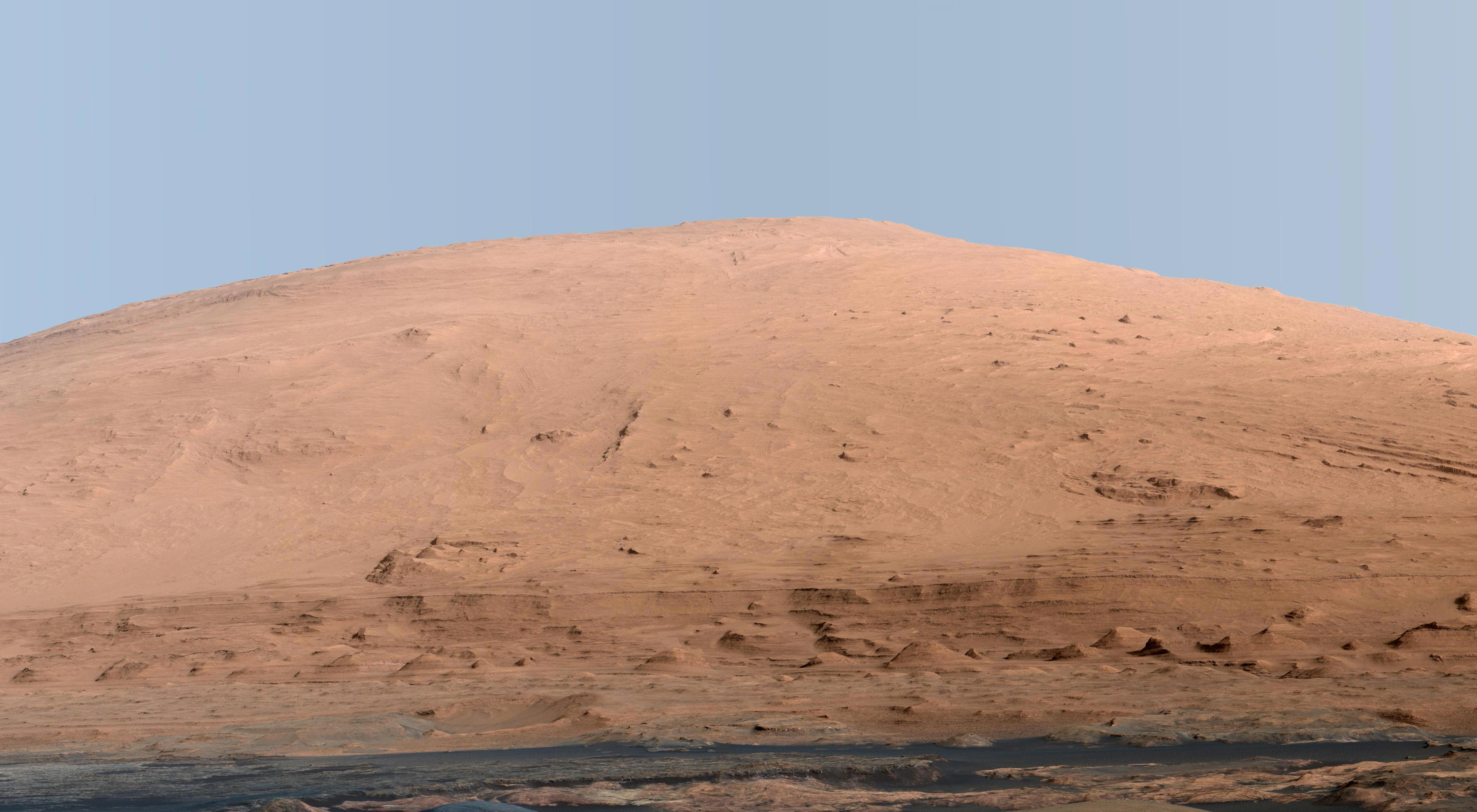 Aeolis Mons panorama seen in natural lighting (NASA/JPL-Caltech/MSSS)[/caption]