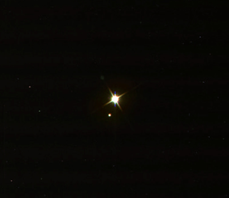 The Moon is the bright dot just below and to the left of Earth. (An original raw image can be seen