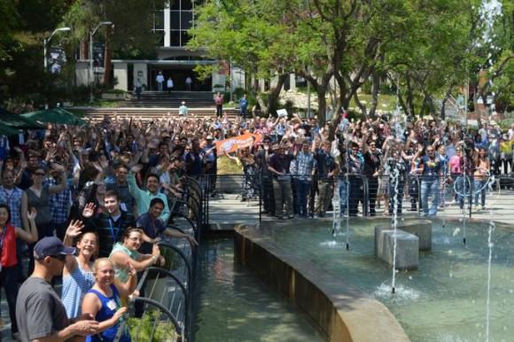 A crowd gathered on the mall at NASA's Jet Propulsion Laboratory in Pasadena to wave at Saturn on July 19 (NASA/JPL-Caltech)[/caption]
