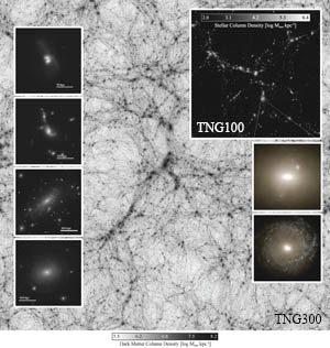 However, this connection between galaxies and dark matter is really only understood in simulations. That's because because we don't have a lot of direct observations of dark matter (as if the name itself didn't give you a clue). In short, we don't fully understand what dark matter is. So sometimes we have to guess, and we put these guesses inside of a computer simulation of the growth of the universe, and we see how normal matter like stars and gas and dust react to that and form galaxies.
