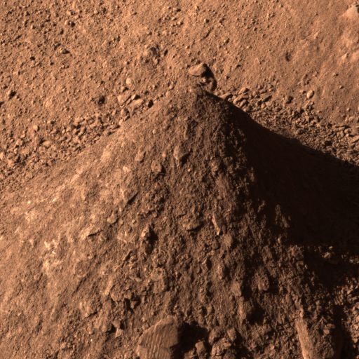 The conical pile is about 10 centimeters (4 inches) tall, and was taken from several trenches that the lander dug. For more about the image, see the