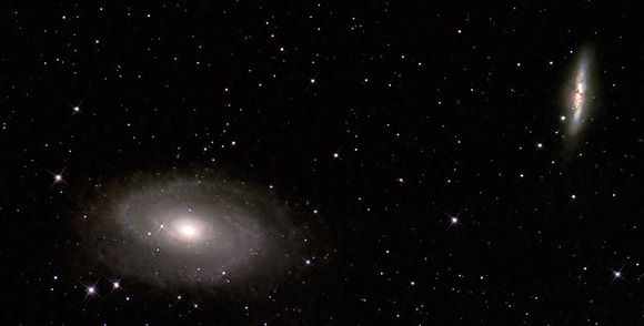 This is an image of two galaxies -- M81 and M82, and was taken from the ground by Markus Schopfer using an 8-inch SC-Telescope and a Digital SLR.