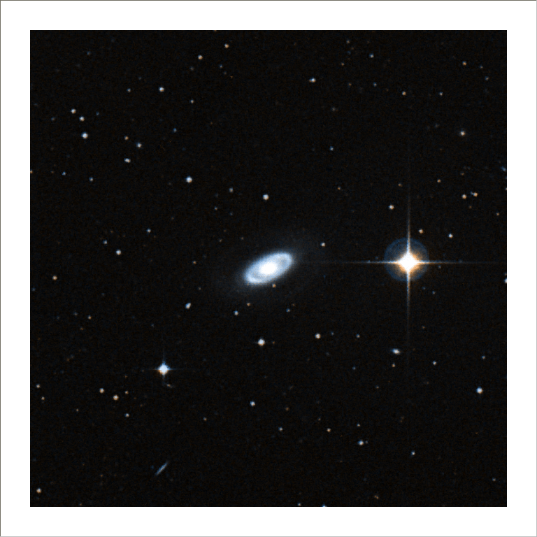 This is NGC 7702, a very unusual ring galaxy found in the southern constellation Phoenix, (at 23h 35m 29.1s ?56deg 00' 45"). Lots of telescopes have taken images of this object, but this image if from the European Southern Observatory, and you can