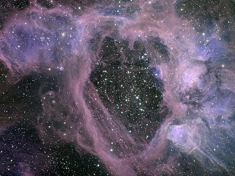 This rather creepy-looking image could be construed as a cavern or the mouth of monster. It is actually a storm of billowing clouds blown by the winds from massive stars, and set aglow by their light. This is a nebula within cluster NGC1929, known as the N44 superbubble. This particular image was taken by the Gemini Multi-object Spectrograph (GMOS) on the Gemini South Telescope in Chile. You can read more about it on