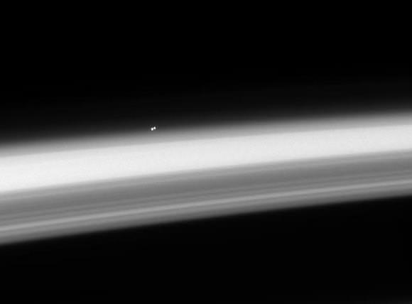You all are pretty sharp! Paul and I both thought looked like a star hovering over Earth's limb. But actually, this is Saturn's limb, with the nearest star system, Alpha Centauri, hanging above the horizon. Both Alpha Centauri A and B—stars very similar to our own—are clearly distinguishable in this image, which was taken by the Cassini spacecraft.