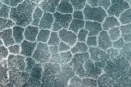 This is a view of the interior of a crater on the northern hemisphere of Mars -- just below the polar ice cap -- which has ice and polygon-shaped cracks, commonly found where subsurface water freezes and thaws during the variations in Mars' seasons. The image was taken by the HiRISE camera on the Mars Reconnaissance Orbiter in 2008.