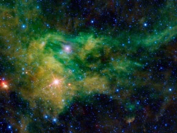 This is the nebula BFS 29 surrounding the star CE-Camelopardalis, as seen by the WISE spacecraft. This nebula can be found hovering in the band of the night sky comprising the Milky Way. "BFS" stands for Blitz, Fich, and Stark -- the three astronomers who identified and cataloged this nebula back in 1982. The "29" means that it's the 29th object in their catalog.
