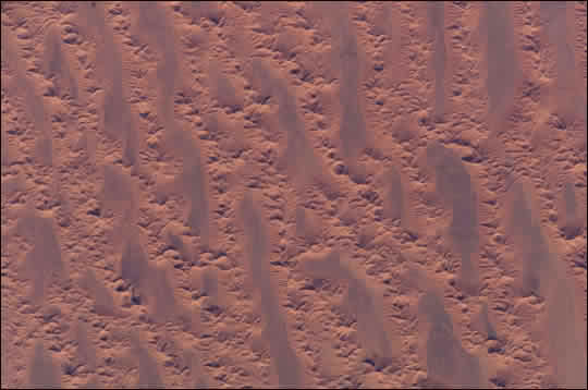 This is Earth, showing a huge ocean of sand called the the Grand Erg Oriental (Eastern Sand Sea) in Algeria. It was taken by an astronaut on board the International Space Station in December 11, 2004, with a Kodak 760C digital camera with a 400 mm lens. See more images like this at the