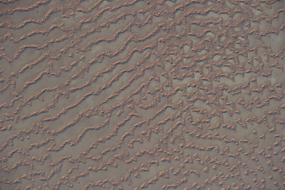 We didn't fool too many people that this was perhaps a HiRISE image from Mars. It actually is Ar Rub al Khali Sand Sea, in the Arabian Peninsula and it was photographed by an Expedition 27 crew member on the International Space Station. The Ar Rub al Khali, also known as the "Empty Quarter", is a large region of sand dunes and interdune flats known as a sand sea (or erg).