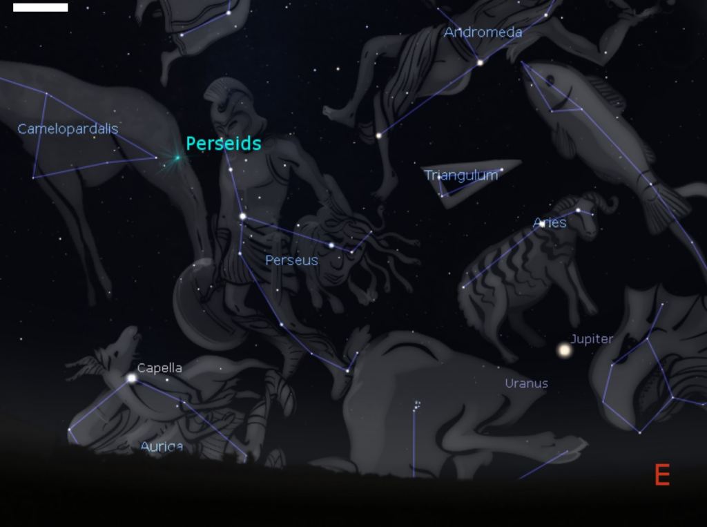 The Perseids are grain-sized bits of cometary dust laid down by Comet 109P Swift-Tuttle on its 133-year orbit around the Sun. The comet is currently headed towards aphelion and won't reach perihelion again until 2126. Most years see the shower producing 60 to 100 meteors per hour as seen from dark skies. The radiant in the constellation Perseus the Hero rises low to the northeast for mid-northern latitudes around 2 AM local. Start watching early as you may see a few early arrivals glancing off the Earth's atmosphere in the evening as well.