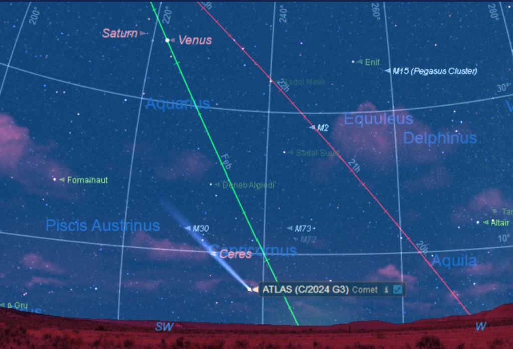 Prospects for seeing this comet will be tricky. Unlike last year's Comet C/2023 A3 Tsuchinshan-ATLAS which unfurled a magnificent tail for its evening apparition, G3 ATLAS will be a timid one both before and after perihelion, as it departs our solar neighborhood hugging the southern horizon in the dusk sky.