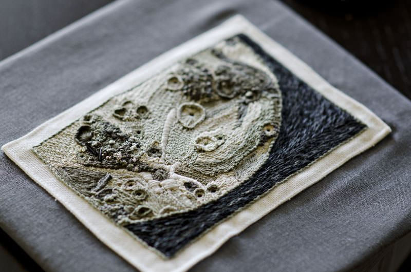 Rachel said she was inspired to capture the gorgeous textures and geologic attributes of the Moon in hand embroidery, as "the moon has always served as artistic and scientific inspiration for humankind. It's easily recognizable, and is a comforting, welcome sight in our sky. Its violently beautiful craters remind us what an active place our solar system is. When I observe the Moon through my telescope, I literally get weak in the knees."