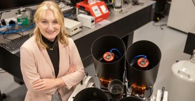 Grace Halferty, lead author of the paper, with the photometry instrument she and others help to build.