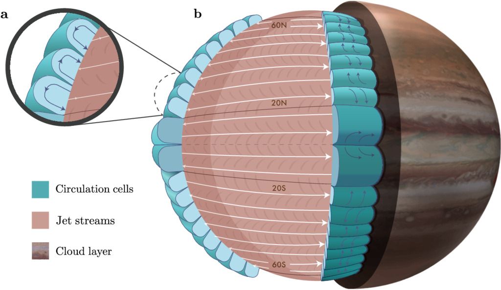Cross section of Jupiter's different atmospheric cells as described in the paper.