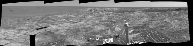And in case you're wondering about the other interesting feature in the image, the shiny object in the background is Opportunity's heat shield.