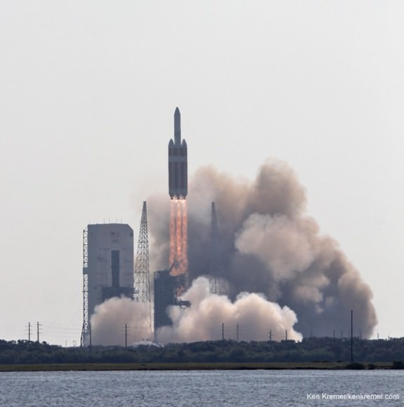 Delta 4 Heavy rocket and super secret US spy satellite roar off Pad 37 on June 29, 2012 from Cape Canaveral, Florida. NASA's Orion EFT-1 capsule will blastoff atop a similar Delta 4 Heavy Booster in December 2014. Credit: Ken Kremer- kenkremer.com[/caption]