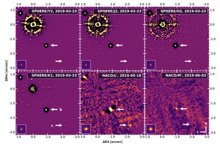 These images are part of a study titled " Two Directly Imaged, Wide-orbit Giant Planets around the Young, Solar Analog TYC 8998-760-1." Lead author is Alexander Bohn, a PhD student at Leiden University in the Netherlands. The research is published in The Astrophysical Journal Letters.