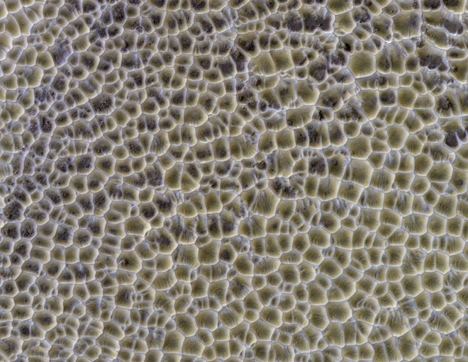What is this? A vast area of Martian rice paddies? Lizard skin? Nope, just an area of intersecting sand dunes. Image: NASA/JPL-Caltech/Univ. of Arizona[/caption]