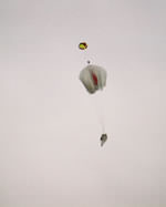 On the second try, the release worked perfectly. You can clearly see the naturally unstable aerodynamics of the vehicle, as it starts to tip over almost immediately after release. We all held our breath as it started to fall, but the drogue immediately inflated and started pulling the main canopy out. It was nine seconds from release to full canopy inflation. The opening shock was negligible, barely hitting 2G?s. For high altitude flights, we are aiming for a 200 mph terminal velocity under the stabilizer drogue at the time of main canopy deployment, so opening shock will be much greater then.