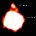 The latest photos released from the Chandra X-Ray Observatory show x-rays produced from a brown dwarf which is orbiting a binary star system at a distance of 2.75 times that of the Pluto Charon orbit around the Sun. The star system is 180 light-years away from Earth in the constellation of Hydra. The brown dwarf, TWA 5B, is a failed star between 15 and 40 times the size of Jupiter.