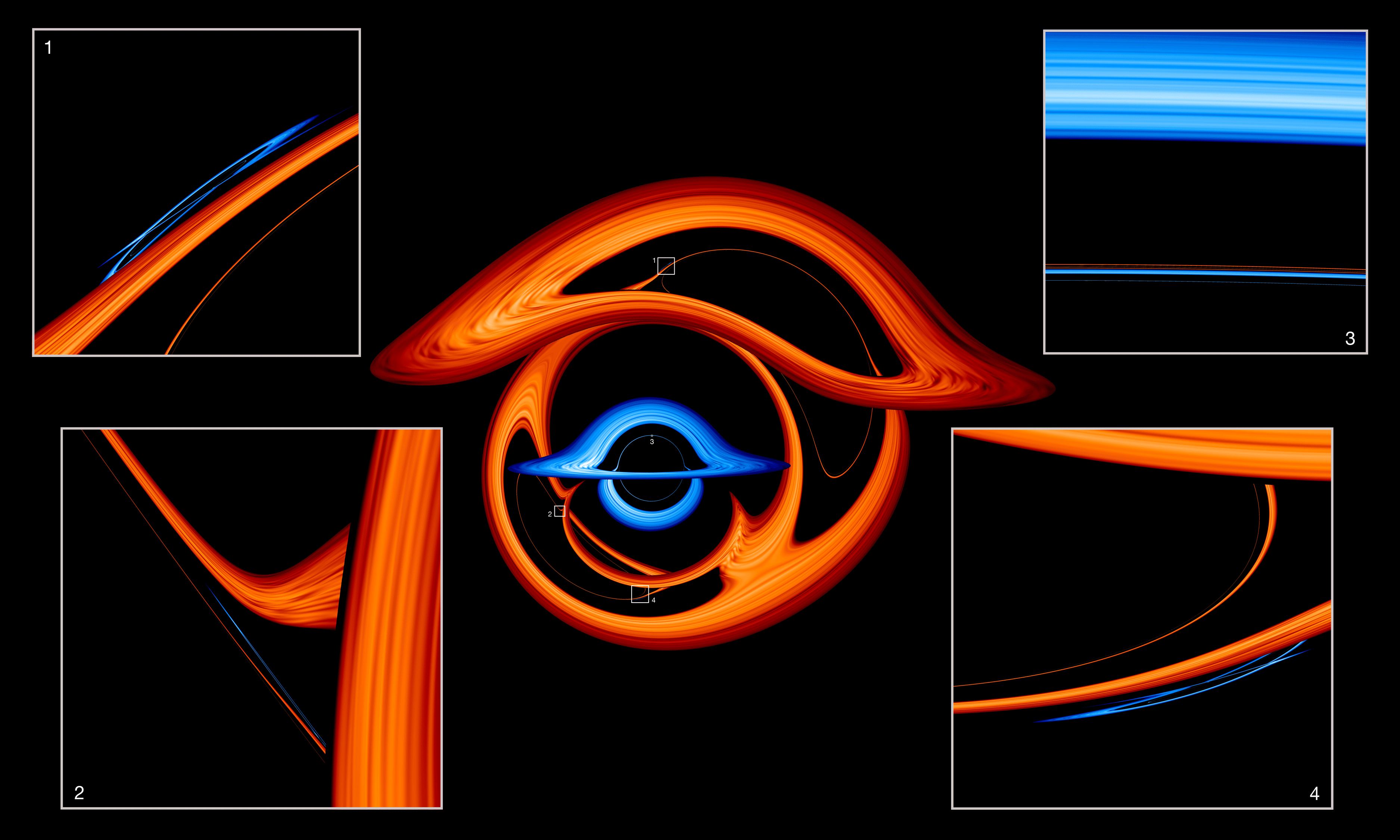 One of the strangest predictions of general relativity is that gravity can deflect the path of light. The effect was first observed by Arthur Eddington in 1919. While the bending effect of the Sun is small, near a black hole light deflection can be significant. So significant that you need a powerful supercomputer to calculate how light will behave.