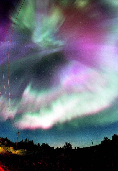 All-sky northern lights display from back in the mid-1990s. Credit: Bob King[/caption]