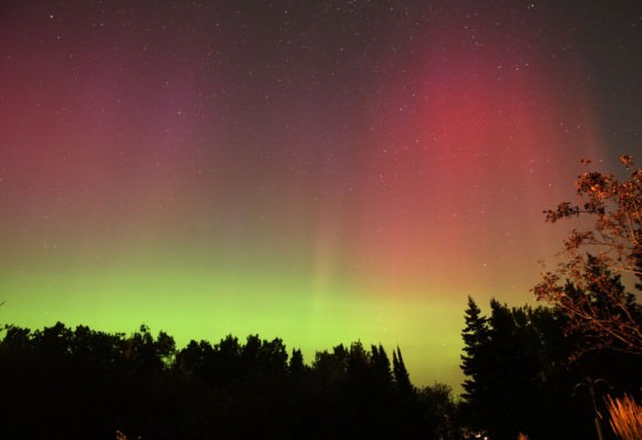 Amazing red rays from an aurora that blew up on September 4, 2012. Credit: Bob King[/caption]