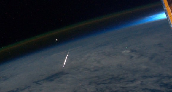 [caption id="attachment_88155" align="aligncenter" width="580" caption="'What a shooting star looks like from space," wrote ISS astronaut Ron Garan on Twitter. Click for larger version"]
