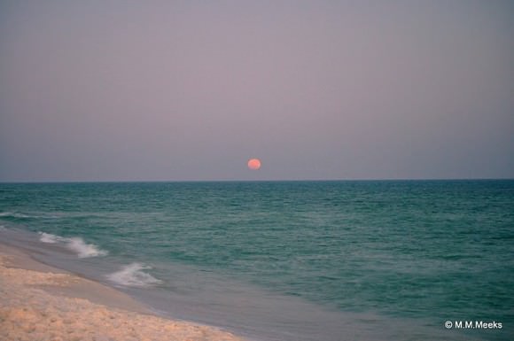 [caption id="attachment_84250" align="aligncenter" width="580" caption="The Moon over Gulf Islands National Seashore near Navarre Beach, Florida. Credit: Mindi Meeks. Click the image to see more in a series taken by Mindi."]